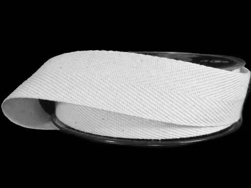 - Taśma bawełniana o szerokości 2,5cm tkana o wzorze jodełki.