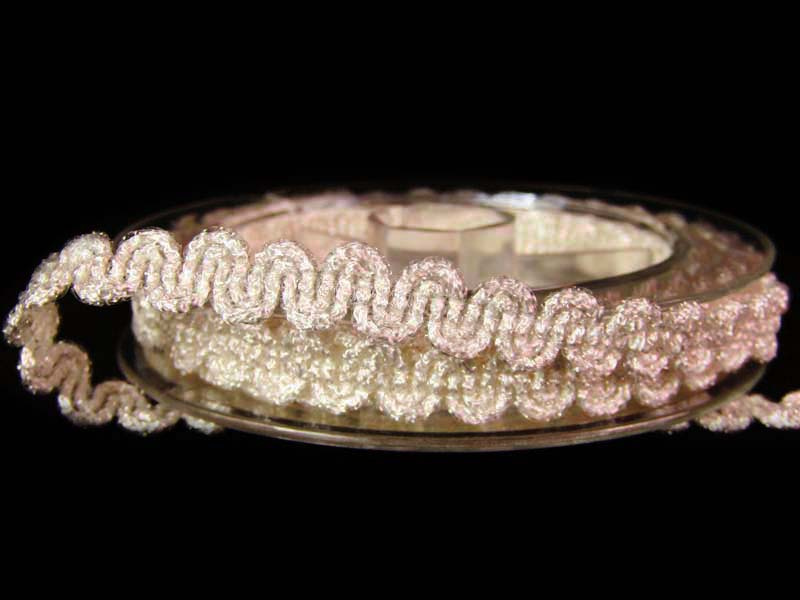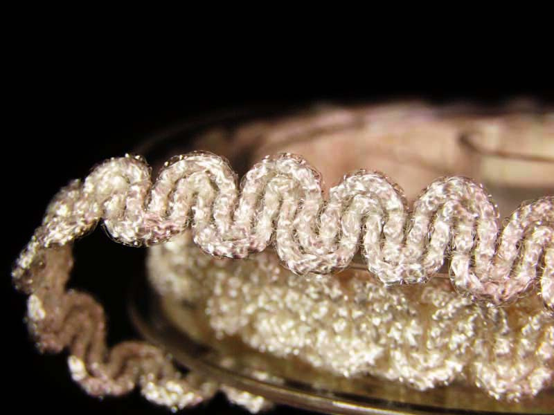 Taśma ozdobna odzieżowa z rodzaju galonowych o szerokości 9mm z dodatkiem białej błyszczącej nitki.