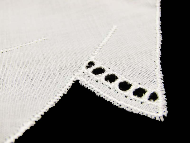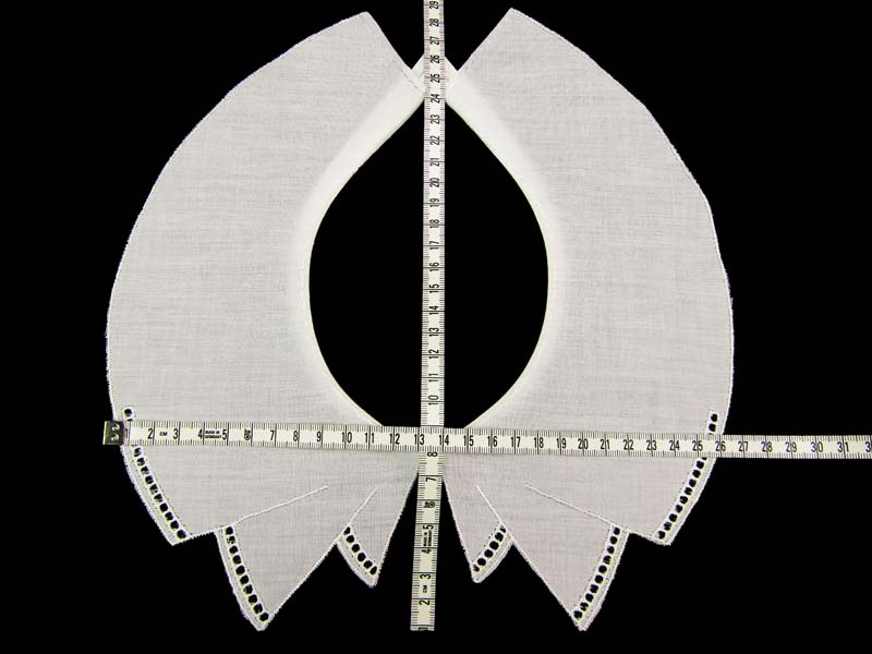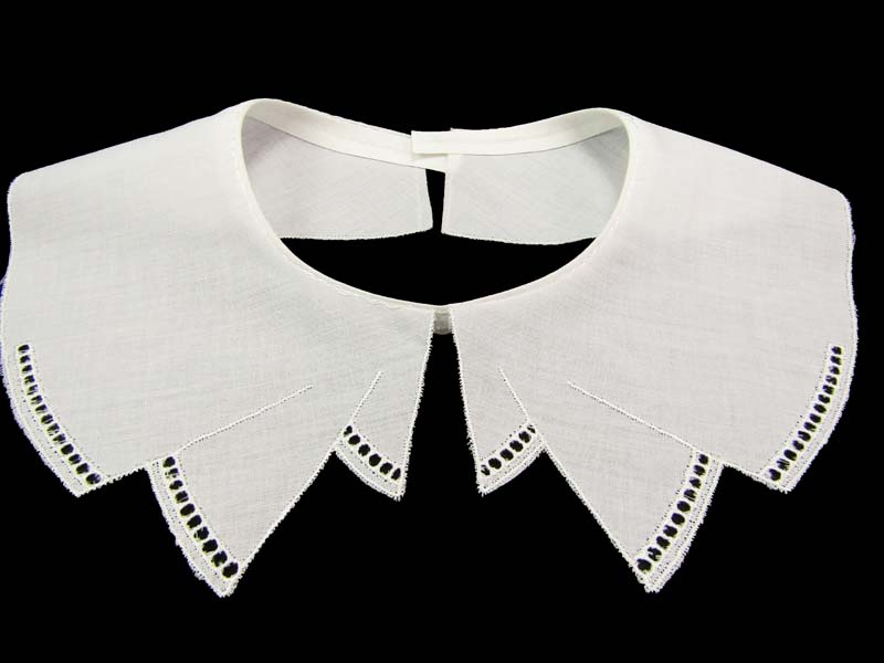 - Kołnierzyk haftowany wiskozową nitką na bawełnianym podkładzie.