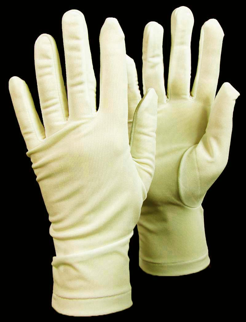 Rękawiczka wykonana z poliestrowej dzianiny o matowym wykończeniu. Stosowana w celach ochronny lub wykorzystywana przy różnego rodzajach uroczystościach państwowych, kościelnych i rodzinnych.