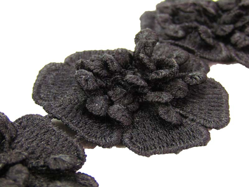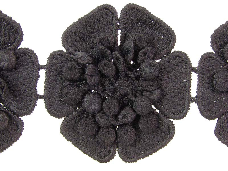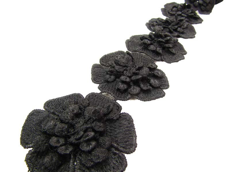 Taśma 5,5cm gipiurowa kwiat 3D czarna