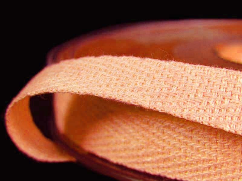 Taśma bawełniana o szerokości 1cm tkana w formie jodełki w kolorze. Taśma jest miękka i delikatna co do struktury. Używana przy produkcji w wielu różnych branżach.