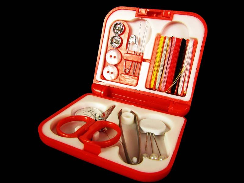 W pełni wyposażony przybornik krawiecki dla podróżujących i nie mających czasu.