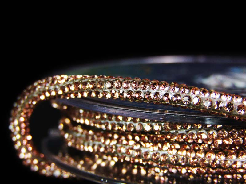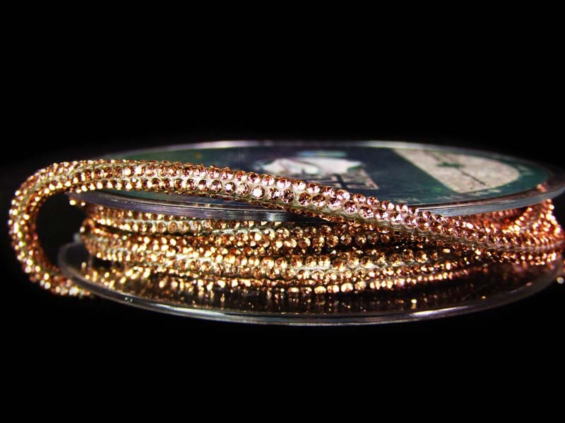 Ozdobna taśma w formie okrągłego sznura z wtopionymi wokół 1mm cyrkoniami w kolorze.