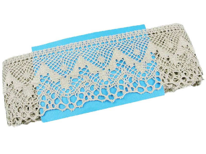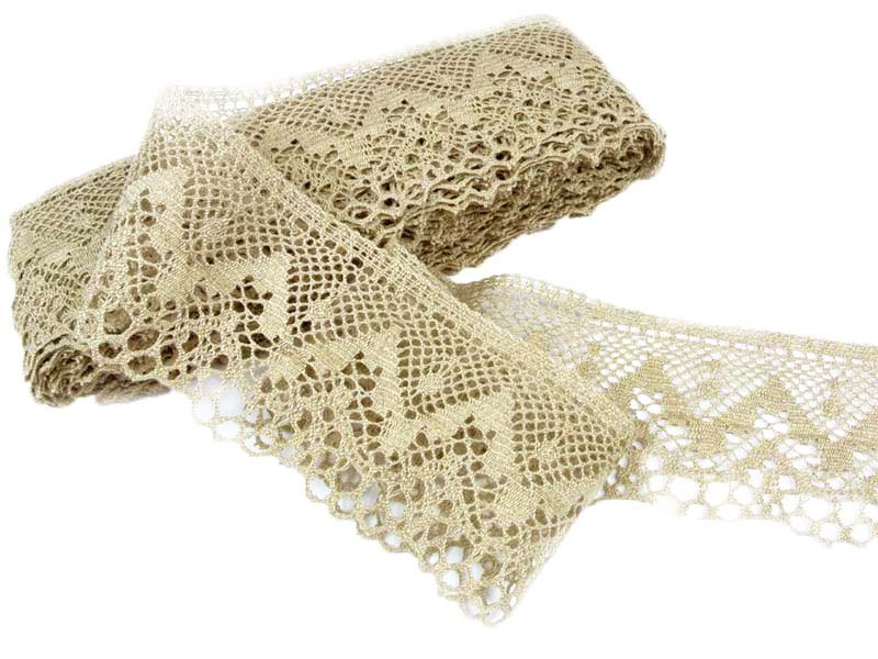 Koronka bawełniana o szerokości 7,5cm w kolorze surowego lnu.