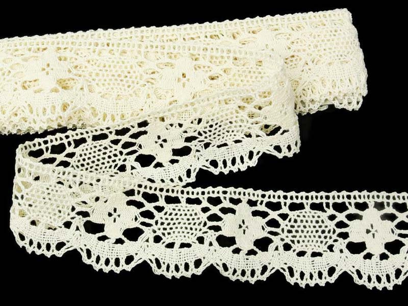 Koronka lniana o szerokości 5cm w kolorze złamanej bieli.