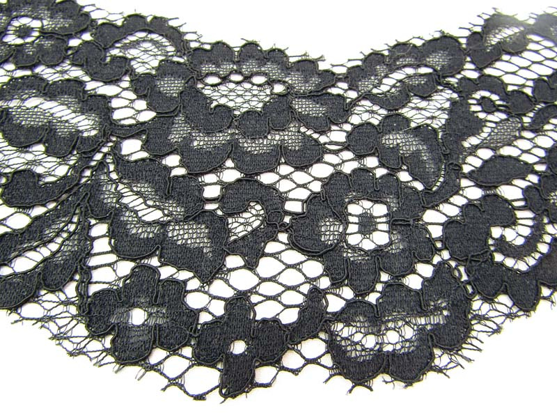 - Koronka o wzorze kwiatowym w kolorze czarnym.