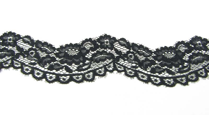 - Koronka o wzorze kwiatowym w kolorze czarnym.
